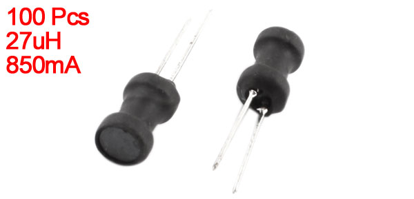 Product Name Radial Lead Inductor Inductance 27uH Rating Current 850mA Tolerance 10% Body Size 6 x 10mm / 0.24" x 0.39"(D*H) Lead Distance 3mm / 0.12" Color Black, Silver Tone Weight 97g Package Content 100(±2%) x Radial Lead Inductor - Reviews