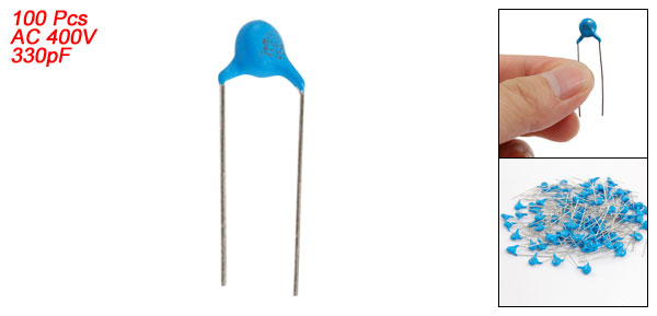 Product Name Safety Ceramic Capacitors Rated Voltage 400V AC Series Y1 Capacitance 330pF Capacitance Tolerance ±10% Lead Spacing 10mm Quantity 100 ± 2% (Pcs) Body Dimension 0.8 x 0.9 x 0.3cm/0.3" x 0.35" x 0.12"(L*W*T) Net Weight 45g Color Blue Package Content 100 Pcs x Safety Ceramic Capacitors - Reviews