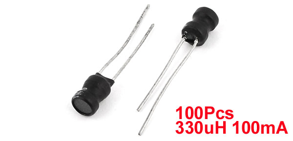 100Pcs 330uH 100mA 4x6mm 10% Tolerance Radial Lead Inductor Black