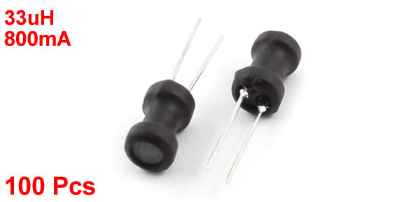 Product Name Radial Lead Inductor Inductance 33uH Rating Current 800mA Tolerance 10% Body Size 6 x 10mm / 0.24" x 0.39"(D*H) Lead Distance 3mm / 0.12" Color Black, Silver Tone Weight 103g Package Content 100(±2%) x Radial Lead Inductor - Reviews