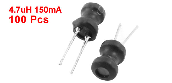 Product Name Radial Lead Inductor Inductance 4.7uH Rating Current 150mA Tolerance 10% Body Size 6 x 8mm / 0.24" x 0.31"(D*H) Lead Distance 3mm / 0.12" Color Black, Silver Tone Weight 87g Package Content 100(±2%) x Radial Lead Inductor - Reviews