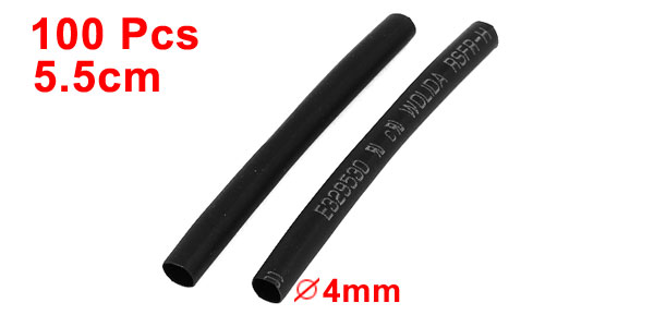 100Pcs 4mm Dia. Heat Shrinkable Tube Shrink Tubing Sleeving 5.5cm Black