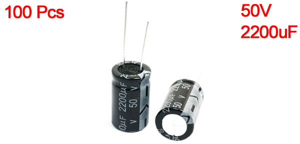 Capacitance 2200uF(±20%) Body Size 25mm x 16mm/ 1" x 0.63"(H*D) Lead Space 5mm Lead Length 26mm, 21mm Main Color Black Total Weight 767g Package Content 100Pcs(±2%) x Electrolytic Capacitors - Reviews