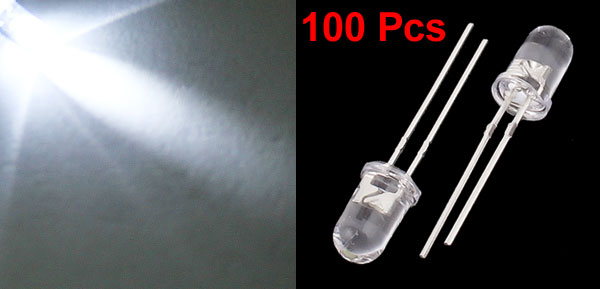 100Pcs 5mm White Ultra-Bright LED Light Lamp Emitting Diodes 12000MCD
