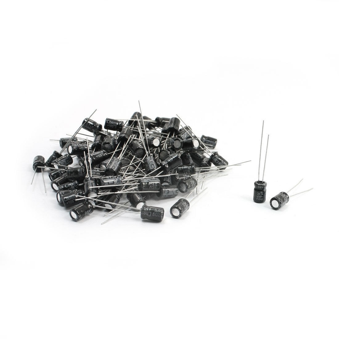Product Name Electrolytic Capacitor Type Radial Temperature Range -40~+105°C Voltage 25V Capacitance 47uF Body Size 5 x 8mm/0.2" x 0.31"(D*H) Lead Space 1.5mm/0.06" Lead Length 20mm/0.8", 25mm/1" External Material Aluminum Total Net Weight 29g Main Color As Picture Show Package Content 100(±2%)PCS x Electrolytic Capacitors - Reviews