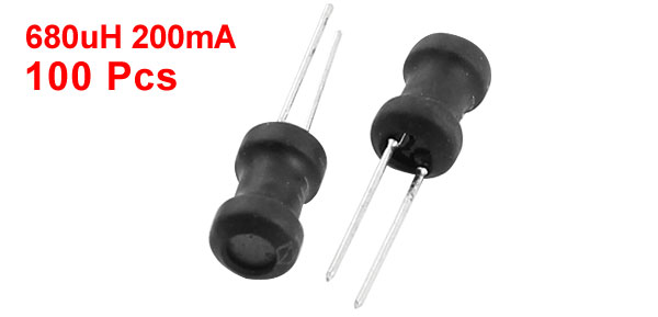 Product Name Radial Lead Inductor Inductance 680uH Rating Current 200mA Tolerance 10% Body Size 6 x 10mm / 0.24" x 0.39"(D*H) Lead Distance 3mm / 0.12" Color Black, Silver Tone Weight 109g Package Content 100(±2%) x Radial Lead Inductor - Reviews