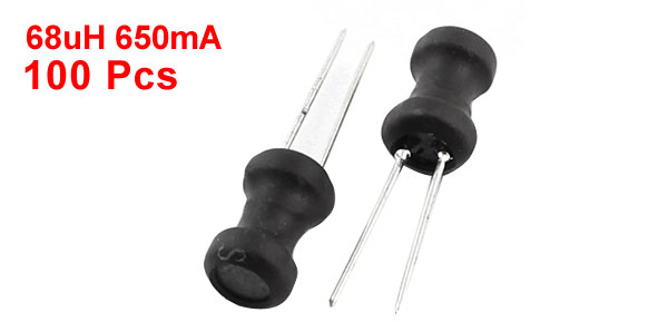 100Pcs 68uH 650mA 6x10mm 10% Tolerance Shielded Radial Lead Inductor Black