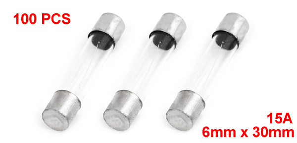 100PCS 6mm x 30mm Fast Acting Type Glass Tube Fuses 15A