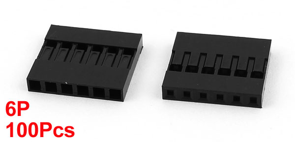 Details100pcs 6P 2.54mm Black Jumper Wire Female Pin Connectors  Product Name Jumper Wire Female Pin Connector Type 6P Pitch 2.54mm Size(Approx.) 15 x 14 x 2.5mm/0.6" x 0.55" x 0.1"(L*W*T) Color Black Metarial Plastic Net Weight 32g Package Content 100(+/-2%) x Jumper Wire Female Pin Connectors