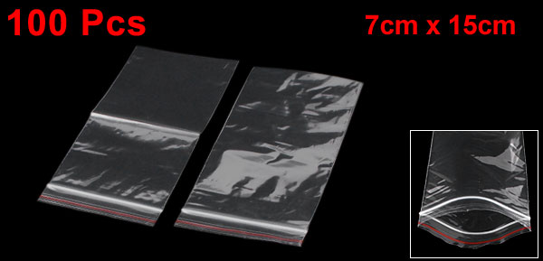 100Pcs 7cm x 15cm Clear 2Mil Poly Plastic Reclosable Zip Lock Zipper Bag