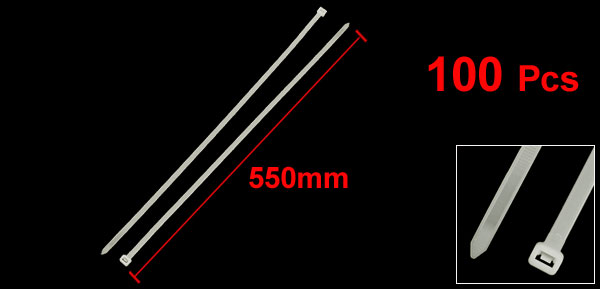 100PCS 8.8mm Width 550mm Length White Nylon Wire Zip Cable Tie Fastener
