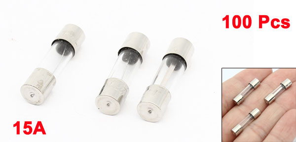 100pcs Auto 250V 15A Quick Acting Glass Tube Fuses Fast Blow 5mm x 20mm