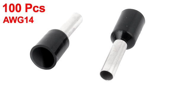 100pcs AWG14 Wire Copper Crimp Connector Insulated Ferrule Cord Terminal Black