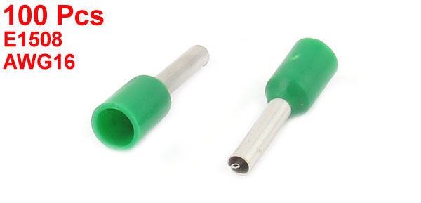 Product Name Insulated Terminal Model E1508 Design Tube Type Fit Cable Size 1.5mm2 16AWG Material Plastic, Metal Color Silver Tone, Green Net Weight 15g Package Content 100 Pcs (+/-2%) x Insulated Terminal - Reviews
