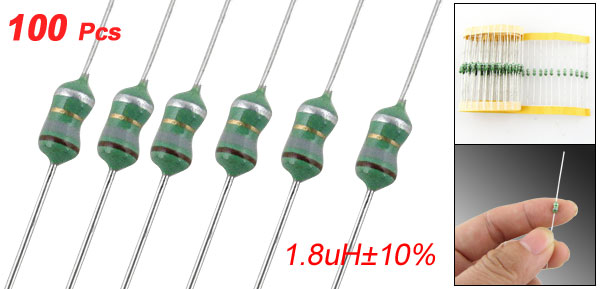 100Pcs Axial Lead Type 1.8uH Color Ring Fixed Inductors