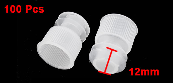 Details100pcs Clear Plastic Flange Type Stopper for 12mm Dia Test Tube  Product Name Test Tube Stopper Fit for 12mm Dia. Test Tube Type Flange Type Hole Inner Diameter 9.5mm/ 0.37" Bottom Dia 12mm/ 0.47" Top Dia 13mm/ 0.51" Total Length 17mm/ 0.67" Material Plastic Color Clear Weight 125g Package Content 100(±2%) x Test Tube Stopper