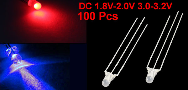 100Pcs Common Cathode Blue Red LED Light Emitting Diodes DC1.8V-2.0V 3.0-3.2V