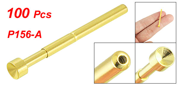 Product Name Spring Probes Quantity 100±2% Pcs Model P156-A Material Metal Tip Diameter (Approx) 4mm/ 0.078" Barrel Diameter (Approx.) 2.36mm/ 0.093" Overall Length(Each) 33.85mm / 1.33" Color Gold Tone Net Weigth 80g Package Content 100 x Spring Probes - Reviews