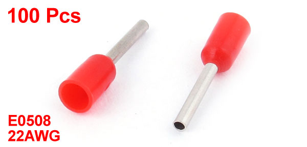 Product Name Insulated Terminal Model E0508 Design Tube Type Fit Cable Size 0.5mm2 22AWG Material Plastic, Metal Color Silver Tone, Red Net Weight 10g Package Content 100 Pcs (+/-2%) x Insulated Terminal - Reviews