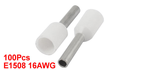100Pcs E1508 16AWG Insulated Ferrule Pin Cord End Terminal Crimp Connector White