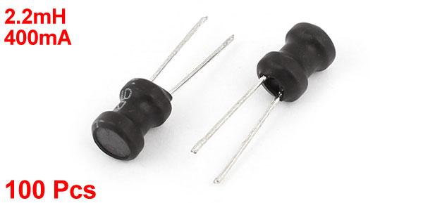 Product Name Inductor Inductance 2.2mH Rating Current 400mA Tolerance 10% Body Size 6 x 8mm / 0.24" x 0.31"(D*H) Pin Size 0.5 x 15mm/ 0.02" x 0.6"(D*L) Lead Distance 2mm / 0.08" Color Black, Silver Tone Weight 47g Package Content 100Pcs(+/-2%) x Inductors - Reviews