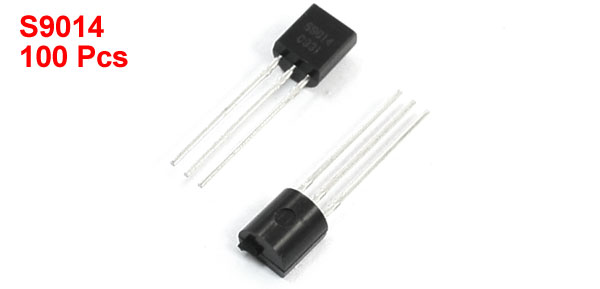 Product Name NPN Transistor Model S9014 Package TO-92 Collector Base Voltage 50V Collector Current 100mA Body Dimension 4 x 4 x 3mm/ 0.16" x 0.16" x 0.12" (L*W*T) Weight 17g Package Content 100Pcs(±2%) x NPN Transistor - Reviews