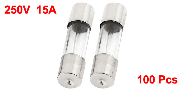 Product Name Glass Tube Fuses Features Fast Blow Rated Voltage 250V Rated Current 15A Dimension 5 x 20mm/ 0.2" x 0.8" (D*L) Material Glass Color Silver Tone, Clear Weight 70g Package 100(± 2%) x Glass Tube Fuses - Reviews