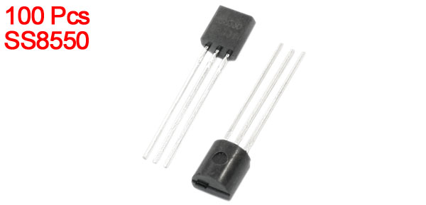 Product Name PNP Transistor Model SS8550 Package TO-92 Collector Base Voltage 40V Collector Current 1.5A Body Dimension 4 x 4 x 3mm/ 0.16" x 0.16" x 0.12" (L*W*T) Weight 17g Package Content 100Pcs(±2%) x PNP Transistor - Reviews