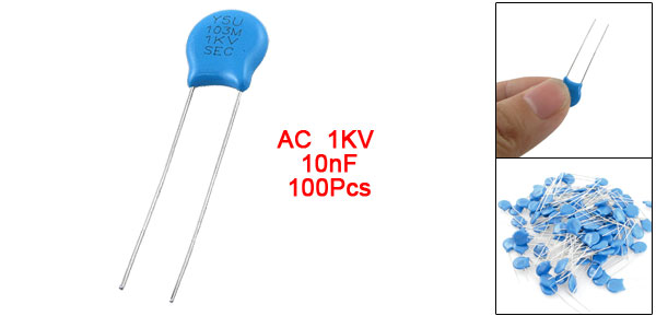 Product Name Safety Ceramic Capacitors Withstand Voltage 1KV Rated Voltage 1KV AC Temperature Characteristic Y5U Capacitance 10nF Capacitance Tolerance K(±20%) Lead Spacing 5mm Lead Diameter 0.4mm Weight 48g Main Color As Picture Show Package Content 100 Pcs x Safety Ceramic Capacitors - Reviews