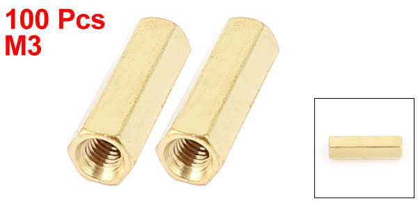 Thread Dia. M3 Main Color Brass Tone Net Weight 155g Country of Manufacture CHINA Package Content 100pcs x Standoff Hexagonal Spacer Material Brass Total Size 15 x 5mm/0.6" x 0.2"(L*W) Hex Width 5mm/0.2" - Reviews