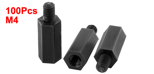 Product Name Hexagon Standoff Spacer Thread Size M4 Male Thread Length 6mm/0.24" Hex Part Length 9mm/0.35" Total Size 23 x 7mm/0.9" x 0.28"(L*D) Material Nylon Color Black Net Weight 68g Package Content 50(+/-2%) x Hexagon Standoff Spacers - Reviews