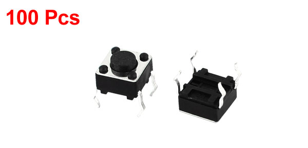 Main Color Black, Silver Tone Product Name Tactile Switch Brand DMiotech Net Weight 25g Action Type Momentary Country of Manufacture CHINA Package Content 100(+/-2%)pcs x Tactile Switch Button Diameter 3.5mm/0.14" Material Metal, Plastic Total Size(Pin No Include) 6 x 6 x 4.5mm/0.24" x 0.24" x 0.18"(L*W*H) - Reviews