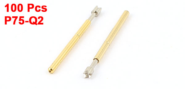 Product Name Test Probe Pin Model No. P75-Q2 Tip Type 4-Point Crown Tip Barrel Dia(Approx) 1.02mm/ 0.04" Tip Dia(Approx) 1.3mm/ 0.05" Overall Length(Approx) 16.5mm/ 0.65" Drill Hole Dia 1.3mm/0.05" Test Distance Min 1.91mm/0.075" Pin Cover Dia 1.32mm/0.052" Material Metal Color Gold Tone, Silver Tone Weigth 8g Package Content 100(±2%) x Test Probe Pin - Reviews