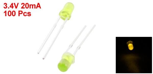 100pcs PCB Board 3.4V 20mA 3mm Dia Head Yellow LED Lamp Bulb Emitting Diode