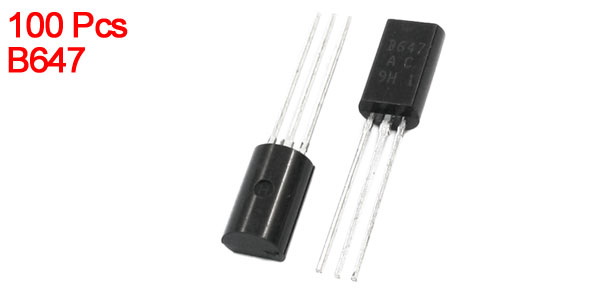 Product Name PNP Transistor Model B647 Package TO-92L Collector Base Voltage 120V Collector Current 1A Body Dimension 8 x 4.3 x 4mm/ 0.3" x 0.17" x 0.16" (L*W*T) Weight 35g Package Content 100Pcs(±2%) x PNP Transistor - Reviews