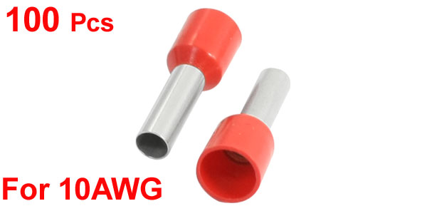 100Pcs Pipe Pre Insulation Terminal Tube Connector Red for 10AWG Wire