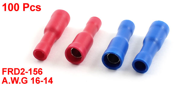 100Pcs PVC Insulated Crimp Straight Butt Cable Terminals FRD2-156 AWG 16-14