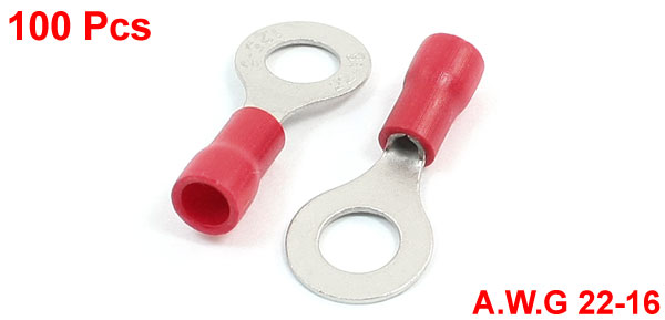 100PCS RV1.25-6 Electric Wring Ring Red Plastic Insulating Crimp Terminals