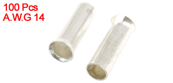 100pcs Silver Tone EN2508 A.W.G 14 Non-insulated Cord End Pipe Terminal