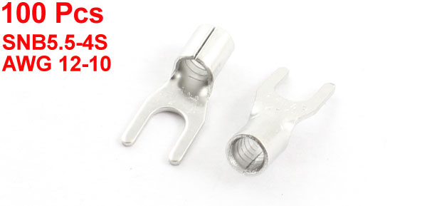 100pcs SNB5.5-4S Fork Type Non-Insulated Spade Cable Terminals for AWG 12-10