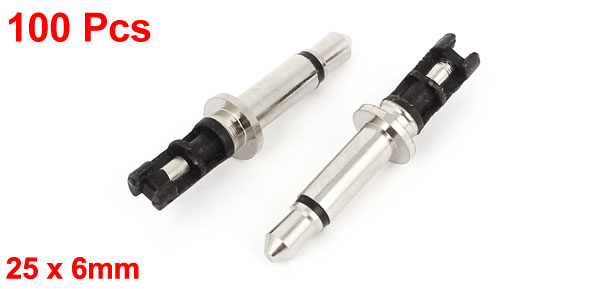 Main Color Silver Tone, Black Total Size (each) 25 x 6mm / 1" x 0.24" (L*D) Net Weight 88g Country of Manufacture CHINA Package Content 100pcs(+/-2%) x Mono Plug Type 2 Pole 3.5mm Male Material Metal, Plastic - Reviews