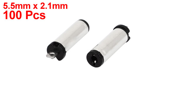 Main Color Black, Silver Tone Net Weight 77g Total Length(Pin Included) 21mm/ 0.85" Country of Manufacture CHINA Package Content 100pcs(+/-2%) x DC Power Male Plug Type 5.5 x 2.1mm(Outer D*Inner D) Material Metal, Plastic - Reviews