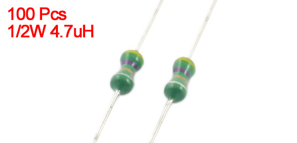 100Pcs Through Hole 1/2W 4.7uH 10% Color Ring Inductors 0410 4x10mm