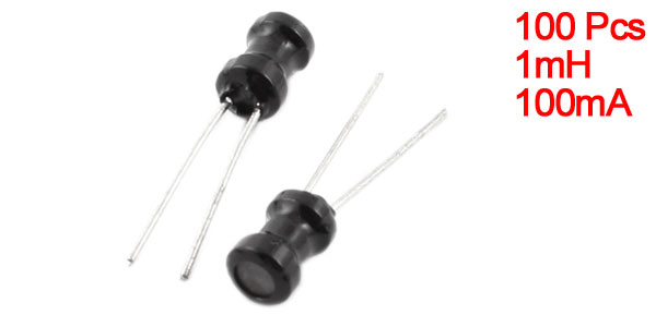 Product Name Radial Lead Inductor Inductance 1mH Rating Current 100mA Tolerance 10% Body Size 4 x 6mm / 0.16" x 0.24"(D*H) Pin Length 10mm/ 0.4" Lead Distance 3mm / 0.12" Color Black, Silver Tone Weight 30g Package Content 100(±2%) x Radial Lead Inductor - Reviews