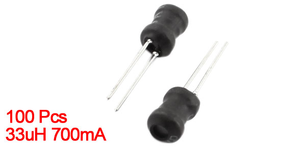 Product Name Radial Lead Inductor Inductance 33uH Rating Current 700mA Tolerance 10% Body Size 5 x 7mm / 0.2" x 0.27"(D*H) Pin Length 15mm/ 0.6" Lead Distance 2.5mm / 0.1" Color Black, Silver Tone Weight 60g Package Content 100(±2%) x Radial Lead Inductor - Reviews
