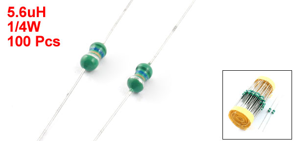 Product Name Color Ring Inductor Inductance Tolerance 10%(K) Inductance 5.6uH Power 1/4W Material Epoxy Resin, Metal, Inductor Body Size 3mm x 7mm / 0.12" x 0.28"(Max.D*L) Lead Diameter 0.45mm Total Length 6cm / 2.4" Net Weight 18g Package Content 100(±2%) x Color Ring Inductor - Reviews