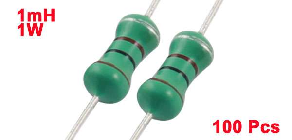 Product Name Color Ring Inductor Inductance Tolerance ±10%(K) Inductance 1mH Power 1W Material Epoxy Resin, Metal, Inductor Body Size 5mm x 10mm / 0.20" x 0.4"(Max.D*L) Lead Diameter 0.4mm / 0.16" Total Length 6cm / 2.4" Net Weight 48g Package Content 100(±2%) x Color Ring Inductor - Reviews
