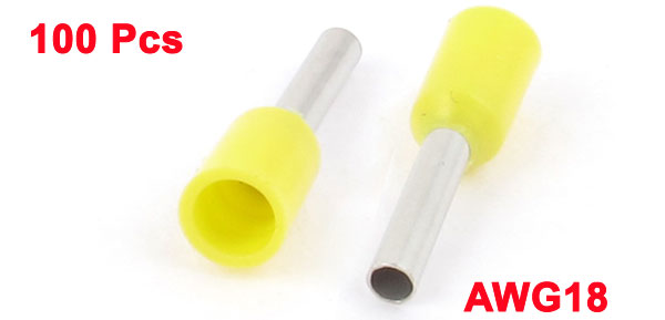 100Pcs Wire Crimp Connector Insulated Ferrule Pin Cord End Terminal AWG18 Yellow