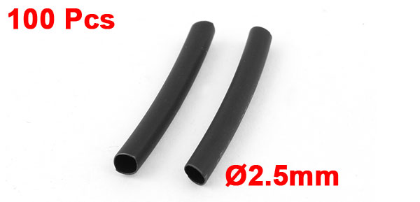 100pcs Wrap Wire Black 2.5mm Dia Heat Shrink Tube Cable Sleeving 2:1