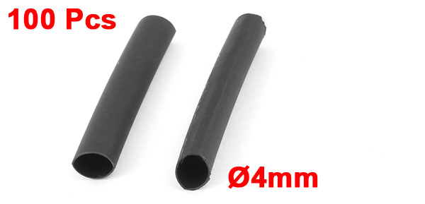 100pcs Wrap Wire Black 4mm Dia Heat Shrink Tube Sleeving 30mm Length 2:1